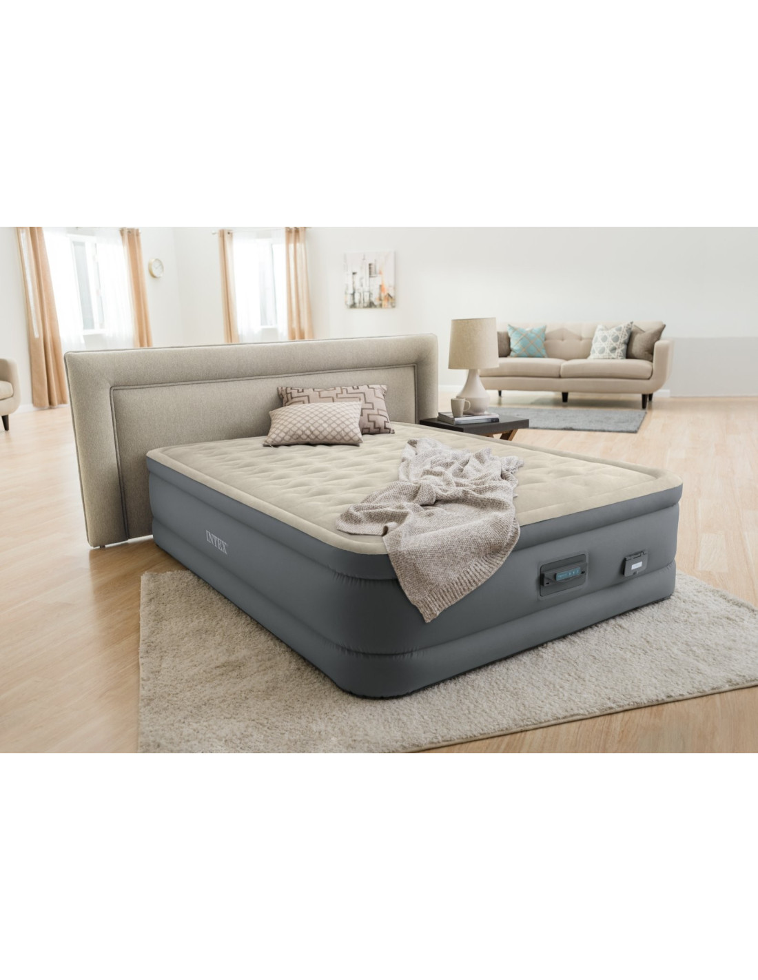 MATERASSO ELEVATED PREMIERE MATRIMONIALE CON TECNOLOGIA FIBER TECH, NUOVA POMPA ELETTRICA INCORPORATA CON PANNELLO DATI E PORTA USB CM 152X203X46 è realizzato con materiali di altissima qualità, robusti e resistenti. Questo materasso fa parte della linea avanzata di materassi gonfiabili PremAire, ciascuno progettato per nuovi livelli di comfort, supporto e durata. Ogni materasso è dotato di un morbido top comfort a 2 strati che incontra i contorni del corpo per un maggiore relax, completato da un'altezza del letto rialzata che rende facile salire e scendere dal letto. Con la tecnologia Fiber-Tech i materassi gonfiabili Dura Beam sono costituiti da migliaia di fibre di poliestere ad alta resistenza per prevenirne l'usura e garantire la durata e il comfort per molti anni. Il peso massimo sostenuto dal materasso è di 272 kg. All'interno del materasso è integrata la pompa elettrica digitale.