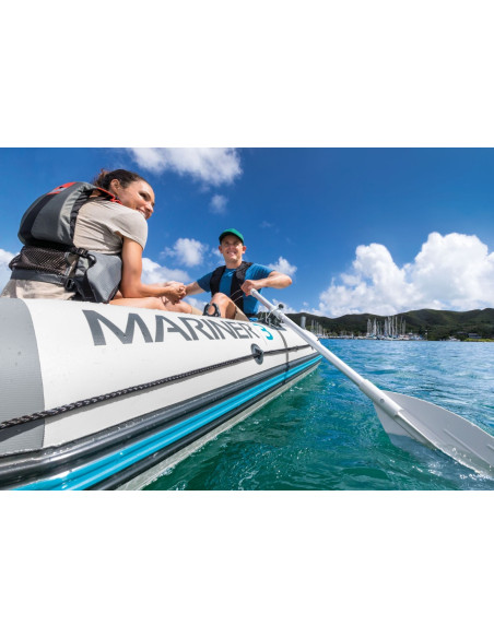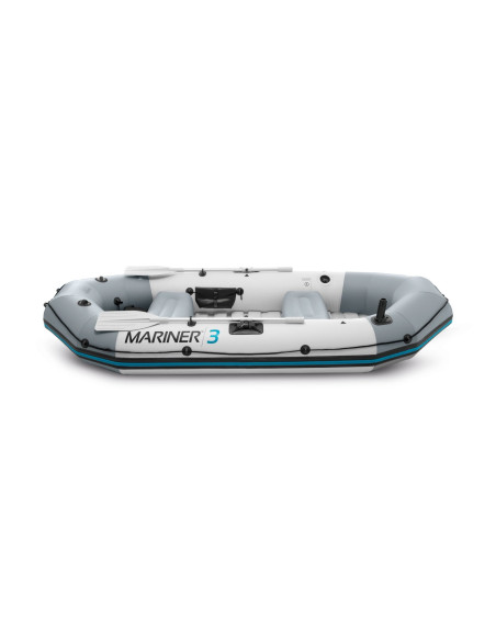 Il Gommone Intex Mariner 3 è costruito per la massima resistenza e durata nel tempo, realizzato con PVC SUPER TOUGH ™ questo materiale è composto da tre strati separati: due strati esterni di PVC di grosso spessore accoppiato a uno strato interno a maglia di poliestere per una maggiore rinforzo della struttura. Ideale per una gita in barca o per pescare con gli amici, questa spazioso gommone della Serie Pro è progettato per tre persone. I rinforzi extra includono una protezione per la chiglia e un pavimento in plastica estrusa per una maggiore rigidità e stabilità dello scafo. Sono compresi una coppia di remi in alluminio e una pompa manuale.