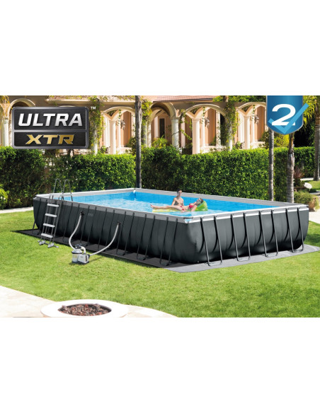 Piscina fuori terra rettangolare Intex 26378 Ultra Frame Extralarge full optional con scaletta, generatore cloro, teli di coprtura kit pulizia deluxe con skimmer incluso e volleyball set per divertirsi con amici ed organizzare feste in piscina